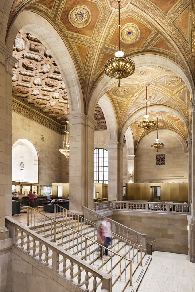 Vacant depuis 2011, la réhabilitation de l’ancienne salle des guichets en 2016 a permit de souligner la beauté de ce patrimoine intérieur en lui redonnant un accès public et un usage vivant. Ceci fut possible grâce à une étroite collaboration entre des expertises complémentaires et de grande qualité incluant artisans, architectes, designers, propriétaires et futurs locataire.