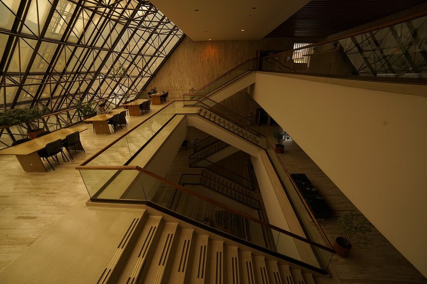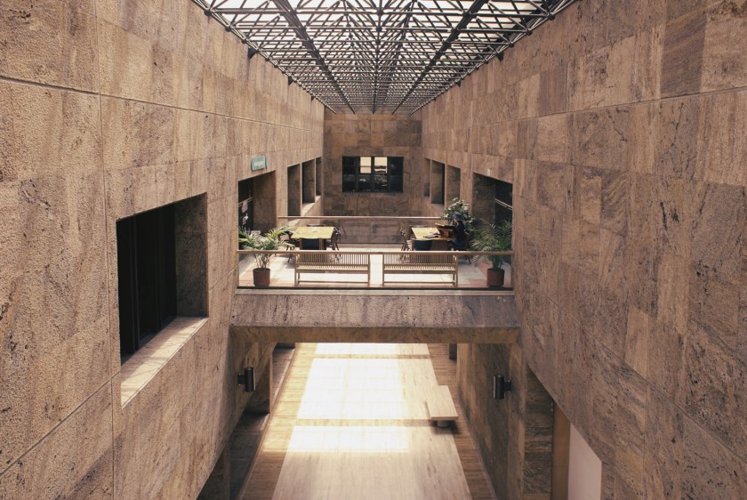 Conçue par l’architecte Germán Samper pour la Banco de la Republica, la bibliothèque s’incruste dans son environnement urbain, respectant les échelles, faisant face au musée Botero. Ses jeux de plans, de toitures et de matières nobles permettent d’illuminer les espaces intérieurs.