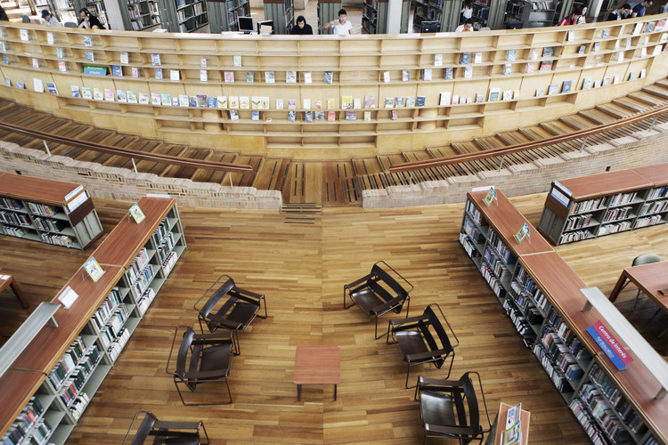 Œuvre emblématique de Rogelio Salmona, la bibliothèque se juxtapose au Parque Metropolitano Simon Bolivar, formant un complexe culturel et paysager. Résultant d’un programme initié par la ville en 1998 pour asseoir la position de celle-ci en favorisant la construction de trois megabibliotheques, celle-ci fut terminée en 2001. De forme organique (escargot), incrustée dans la terre, ces trois étages offrent un paysage de salles de lecture et de travail se fondant dans les montagnes, les plans d’eau et les espaces de circulations tantôt minéraux, tantôt végétaux. Par les grandes baies vitrées et de larges espaces ouverts rendus possibles par un climat doux a l’année longue, la nature se fonde dans les intérieurs.