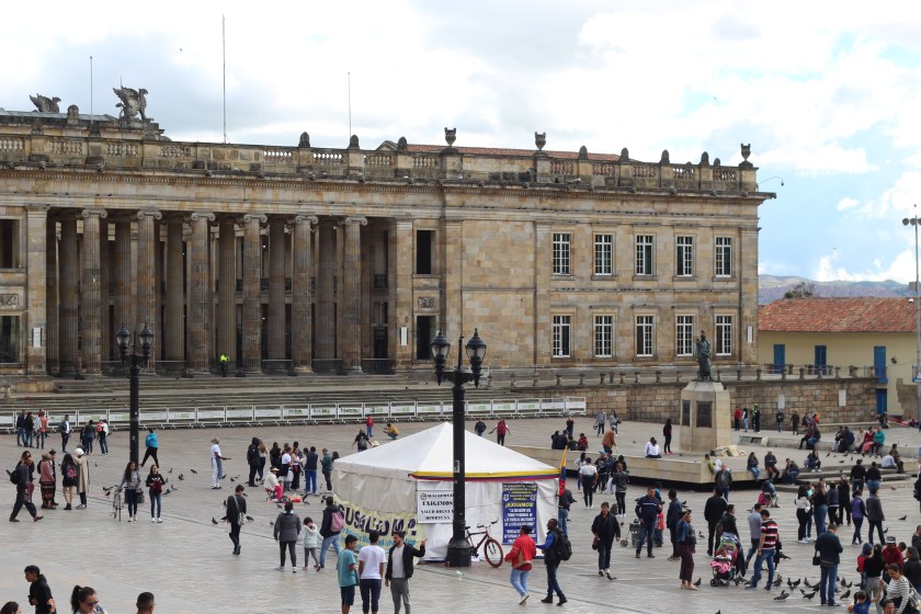 Arrivée aux dernières heures du 4 juin, ce fut une immersion des plus dépaysantes que de plonger dans l’immensité de la capitale colombienne. Une immersion imprégnée de contrastes (architecturaux, sociaux, culturels, linguistiques, et j’en passe), de bruits étourdissants, de couleurs vives, de saveurs nouvelles, d’odeurs prégnantes, et d’un chaos structuré qui nécessite l’adoption d’une nouvelle démarche de flanage, observant constamment et constamment observée…