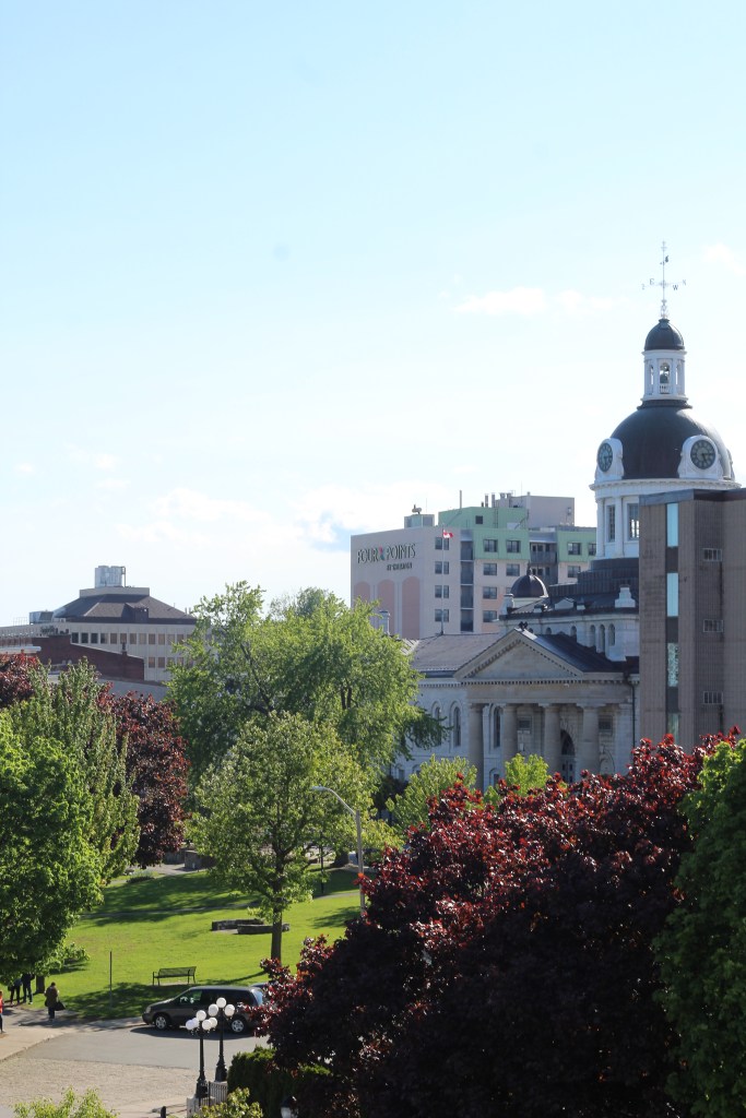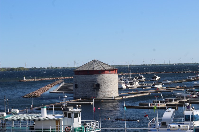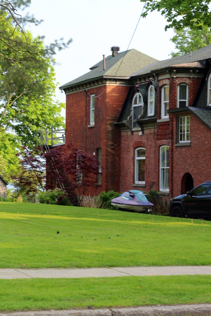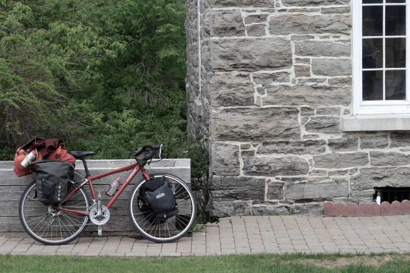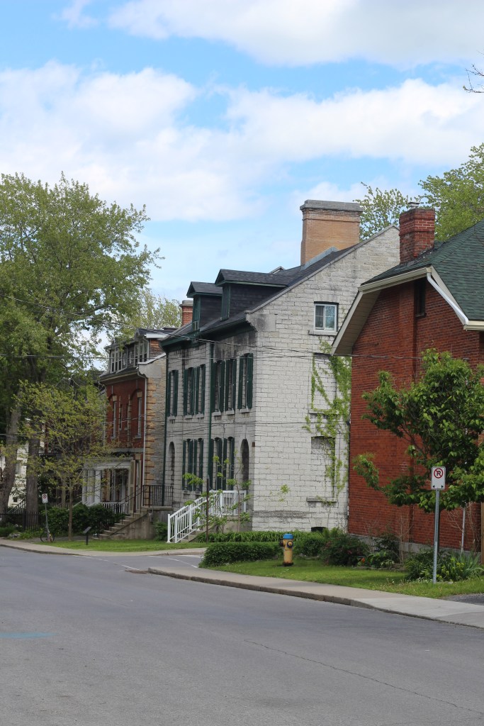 Brockville – J6 : Nuitée au parc St-Lawrence. Cette ville ontarienne habite les bords de l’eau et a su préserver plusieurs bâtiments historiques, meme si la rue centrale souffre de certains développements commerciaux douteux. Longeant le fleuve, mon arrivée au cœur de la ville est ponctuée de belles residences de briques rouges ou de bois avec d’amples galleries et un agencement de toits élégant.