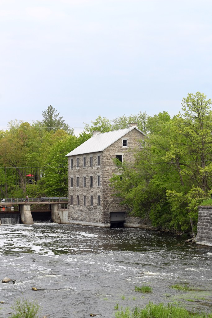 Kemptville, en passant par Manotick – J5 : longeant le canal rideau, je quitte la capitale pour rejoindre le fleuve. Après le trafic dense des routes d’Ottawa, je traverse des paysages de campagne ponctués de quelques trouvailles dont le Moulin Watson a Manotick. Il s’agit d’un bel exemple de cette architecture industrielle en Ontario, pièce maîtresse de la construction du village. Édifié dans les années 1860, il bénéficiait alors aventageusement des forces des turbines hydroliques du canal. Utilisé par la meme famille jusqu’en 1929, il fut par la suite restauré en 1972 par la « Rideau Valley Conservation Authory » pour accueillir un centre d’interprétation et une petite boutique vendant la farine qui y est encore produite. Ce moulin témoigne de l’importance du canal dans l’intérieur des terres, favorisant l’implantation, la croissance des villages adjacent et le développement de leurs activités.